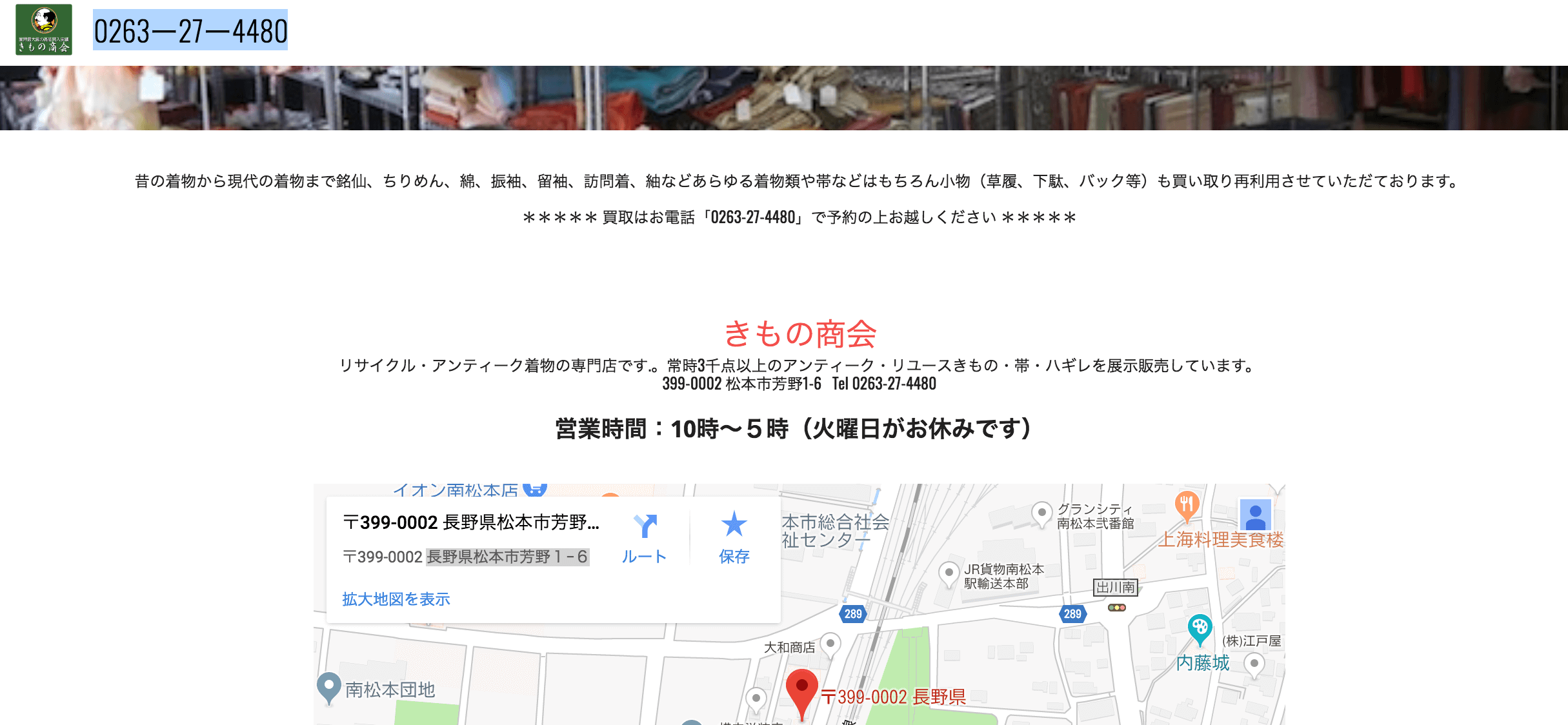| 受付時間 | 10:00-17:00 TEL:0263-27-4480 |