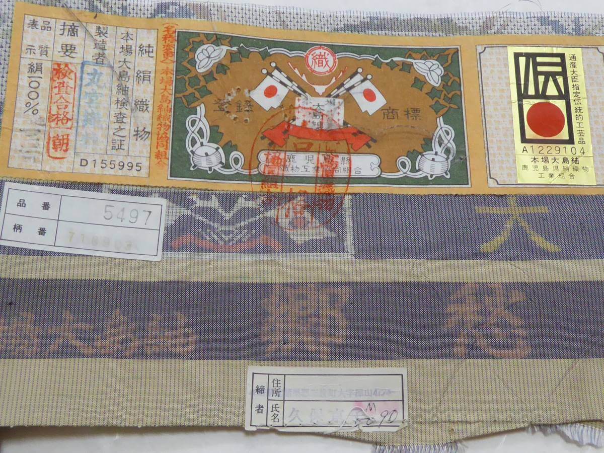 本場大島に認定された織物の証紙には、