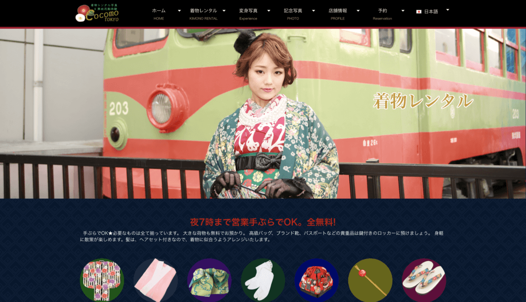 | プラン/料金 | ◎レトロ着物プラン 6,900円(税抜き)でアンティーク着物やレトロビンテージの着物をレンタルできるプランです。 他店にはない個性的な着物は、浅草の町並みに映えるおしゃれさが魅力です。◎プリンセス着物プラン cocomoがオリジナルで製作したドレスのような世界に1着の着物をレンタルすることができます。 浅草で着物を着て撮影をしたいと言う方にもおすすめ! cocomo Tokyoだけの世界観が魅力! |
